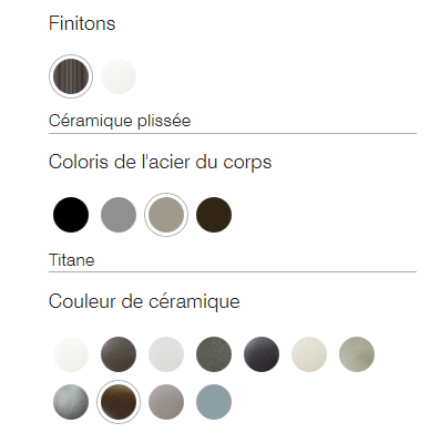 Céramique griffée Coquillage, Céramique griffée Craie, Céramique griffée Météorite, Céramique plissée Albâtre, Céramique plissée Mojave, Céramique plissée Montagne